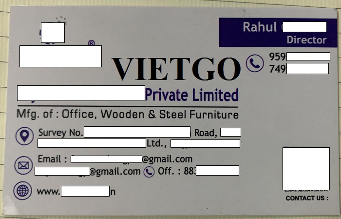 Vừa qua, ông Rahul - hiện đang là Giám đốc điều hành của công ty ██████████ Limited có địa chỉ tại Survey No. ██████████, ██████████ ██████████, Nagpur - ██████████, Ấn Độ đã liên hệ với VIETGO để bày tỏ mong muốn tìm nhà cung cấp mặt hàng ván dăm phục vụ hoạt động sản xuất nội thất của công ty.