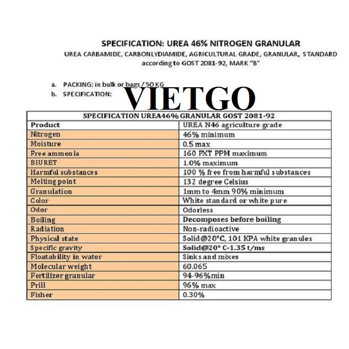 Vừa qua, VIETGO đã nhận được một lời đề nghị báo giá từ ông Mohd - đại diện của ██████████ Sdn Bhd - về đơn hàng nhập khẩu phân bón urea N46 cho khách hàng của mình tại Malaysia.