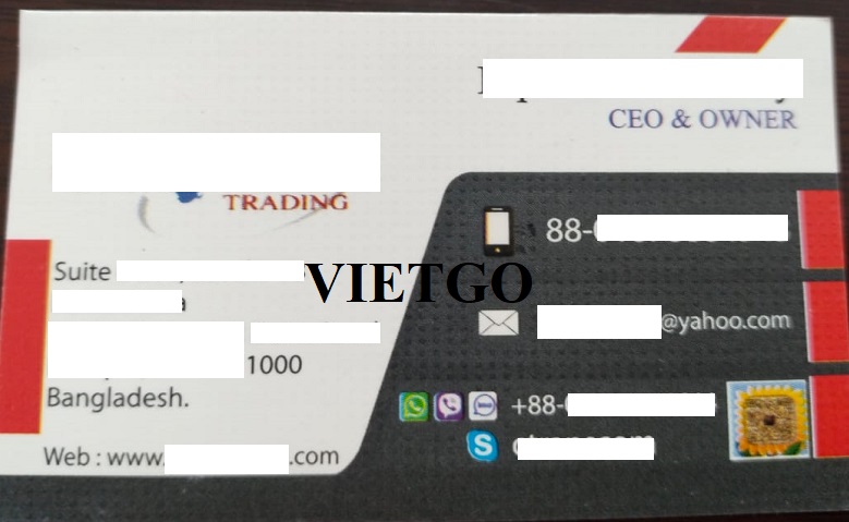 Dành thời gian trò chuyện cùng VIETGO, ông Cristal chia sẻ: “Châm ngôn của công ty chúng tôi là: “Dịch vụ khách hàng là trách nhiệm của toàn bộ công ty”, vì vậy đối với những đơn hàng chúng tôi cung cấp cho khách, ngoài giá cả cạnh tranh, chất lượng phải là ưu tiên số một, phải cho khách hàng cảm giác của sự tin tưởng, thân thiện và gần gũi. Thông qua các nhà cung cấp của mình, chúng tôi liên tục bắt kịp các công nghệ sản xuất mới nhất, những mặt hàng thịnh hành trong thị trường kinh doanh. Chúng tôi tự hào về các nhà cung cấp của chúng tôi là một trong những nhà cung cấp lớn nhất và uy tín nhất trong khu vực. Chúng tôi tin tưởng vào việc phát triển mối quan hệ lâu dài với khách hàng của chúng tôi. Như vậy, ██████████TRADING mới có được sự uy tín và phát triển rộng lớn trên khắp lãnh thổ như ngày hôm nay. Tôi, với vị trí Chuyên viên kinh doanh, được công ty tín nhiệm để tìm kiếm nhà cung cấp cho đơn hàng nhập khẩu ván sàn gỗ ngoài trời phục vụ cho dự án sắp tới để phân phối trong trong thị trường Bangladesh và các nước lân cận vùng Nam Á. Thông qua VIETGO, tôi mong muốn nhanh chóng tìm được nhà cung cấp uy tín và chất lượng để hợp tác lâu dài”.