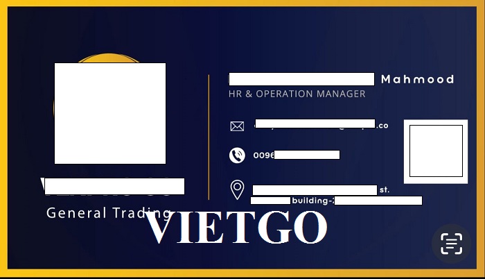Với những chia sẻ trên, ông Mohmaad rất mong muốn thông qua mạng lưới kết nối của VIETGO có thể tìm được một người đại diện thương mại phù hợp. Vậy, VIETGO mong những đối tác tiềm năng có thể nhanh chóng liên hệ sớm cho vị khách hàng và tiến hành đàm phán trong thời gian sớm nhất theo thông tin liên hệ dưới đây: