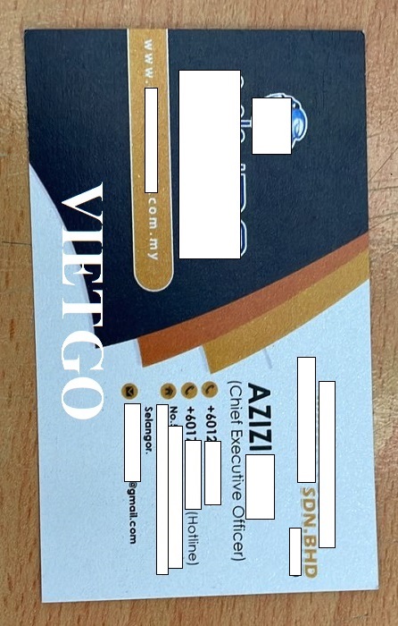 VIETGO vừa có cuộc trao đổi với ông Azizi về đơn hàng nhập khẩu quần chơi golf để phục vụ cho công việc kinh doanh tại thị trường Malaysia. Được biết, ông Azizi hiện đang công tác tại ██████████ SDN. BHD. Công ty được thành lập vào ngày 06 tháng 02 năm 2017, có địa chỉ tại số ██████████, Malaysia. Được biết, công ty đã có nhiều năm kinh nghiệm trong lĩnh vực xuất nhập khẩu hàng hóa, cũng như cung cấp dịch vụ tìm kiếm nguồn cung ứng sản phẩm theo yêu cầu của khách hàng.