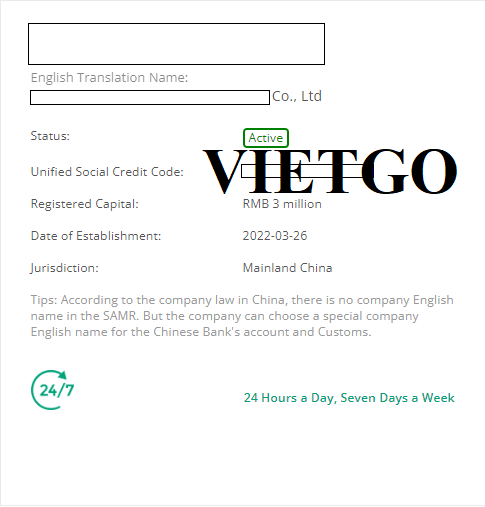 Tên công ty: ██████████ Co., Ltd. (██████████)