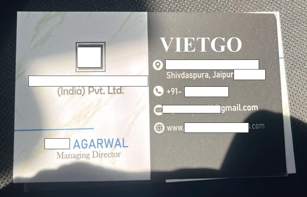Vừa qua, ông Agarwal - hiện đang là giám đốc điều hành công ty ██████████ (India) Pvt. Ltd. đã liên hệ với VIETGO để bày tỏ mong muốn tìm nhà cung cấp mặt hàng gỗ dán.
