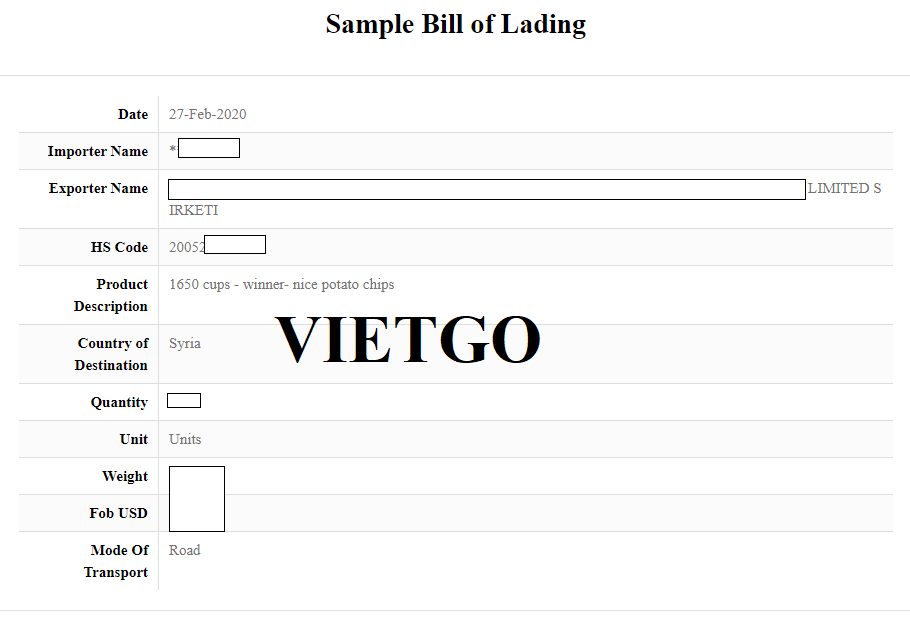 Hình ảnh bản vận đơn mẫu của công ty vị khách hàng