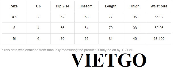Bảng kích thước cho quần