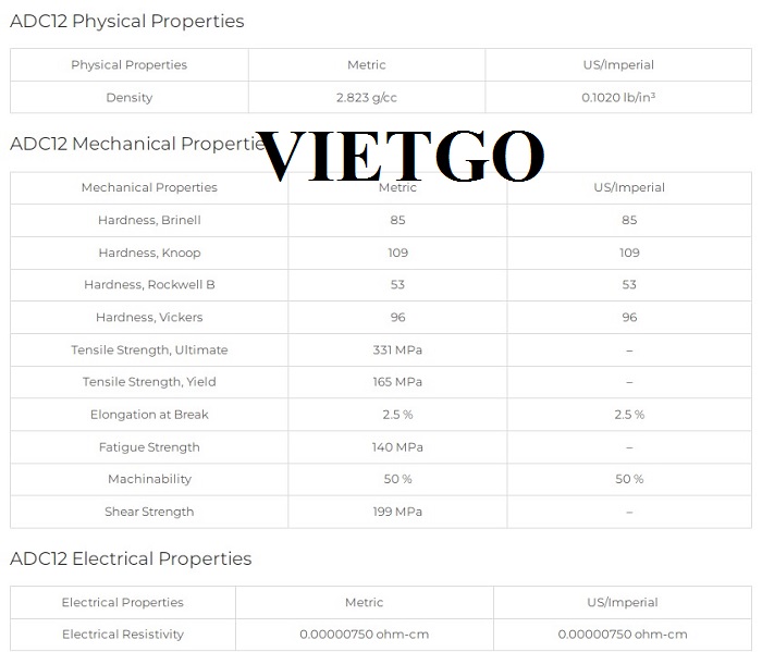 Yêu cầu: Thỏi nhôm ADC12 có chất lượng tốt