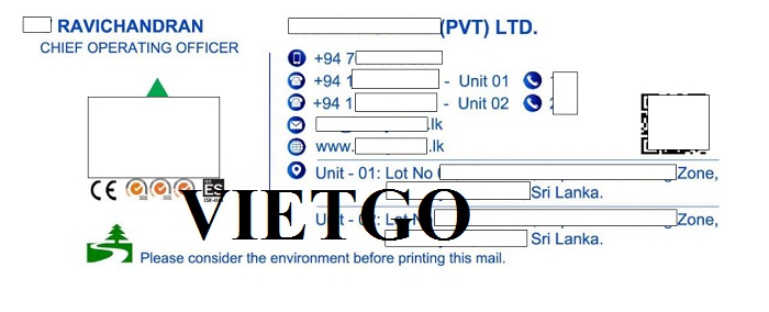 Địa chỉ công ty: Lot No ██████████, Sri Lanka