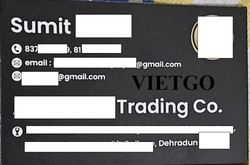 Vừa qua, ông Sumit đã liên hệ với VIETGO và mong muốn được nhập khẩu cốc giấy tới thị trường Ấn Độ. Ông Sumit ██████████hiện đang là Quản lý của công ty ██████████. Ông là người chịu trách nhiệm chính trong việc nhập khẩu và kinh doanh các sản phẩm của công ty. Công ty của ông Sumit được biết đến là một trong những doanh nghiệp tư nhân kinh doanh sản phẩm giấy hàng đầu tại Ấn Độ.