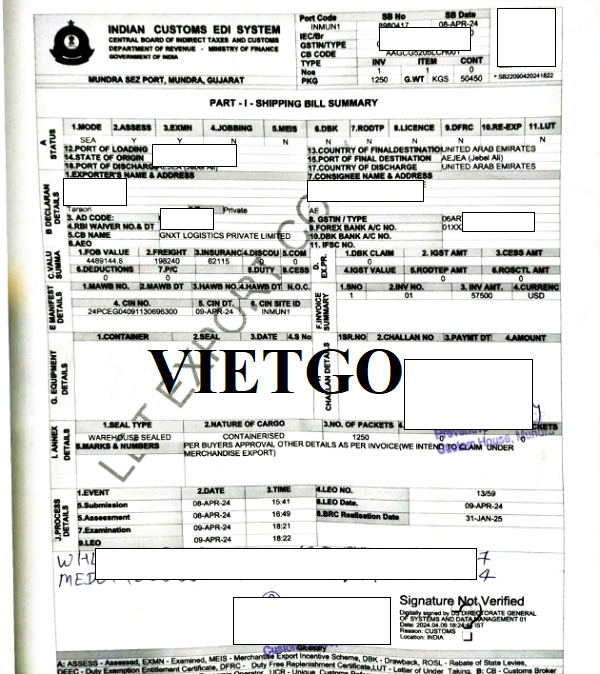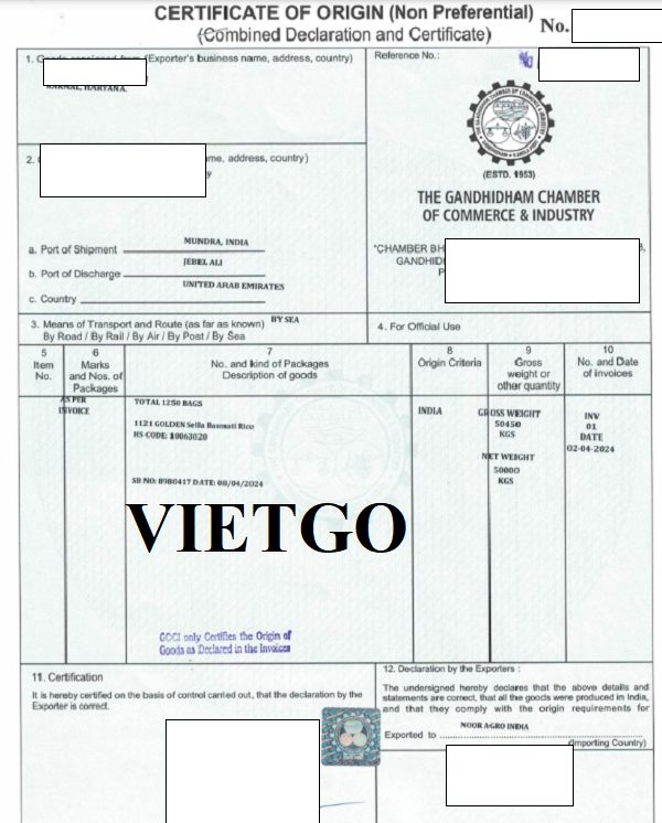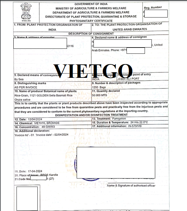 Dưới đây là hình ảnh các giấy tờ nhập khẩu từ Ấn Độ của công ty vị khách hàng đã thực hiện mới đây