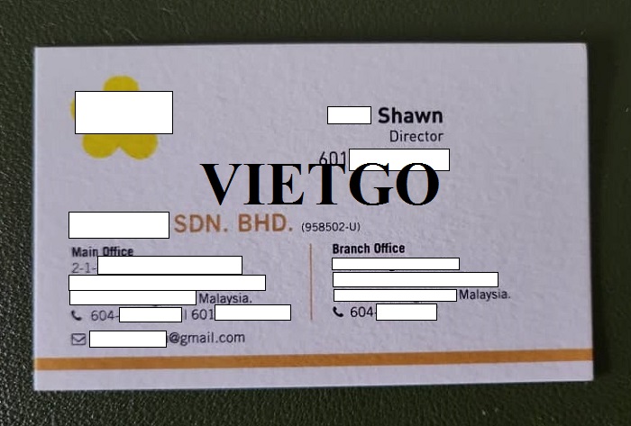 Ông Shawn là Giám đốc của ██████████ SDN. BHD. Công ty được thành lập từ năm 2010 với hoạt động chính là kinh doanh, xuất khẩu sầu riêng tươi và đông lạnh. Bên cạnh sứ mệnh “Thúc đẩy sầu riêng địa phương”, ██████████ SDN. BHD. hiện tại đã phát triển thành một công ty có uy tín với hơn 10 năm kinh nghiệm xuất khẩu và kinh doanh quốc tế. Ông Shawn chia sẻ thêm rằng: “Chúng tôi đã mở rộng hoạt động của mình bằng cách tham gia tìm nguồn cung ứng và nhà cung cấp cho đa dạng các mặt hàng chất lượng cao như trái cây, rau quả, đường, hải sản, v.v.”