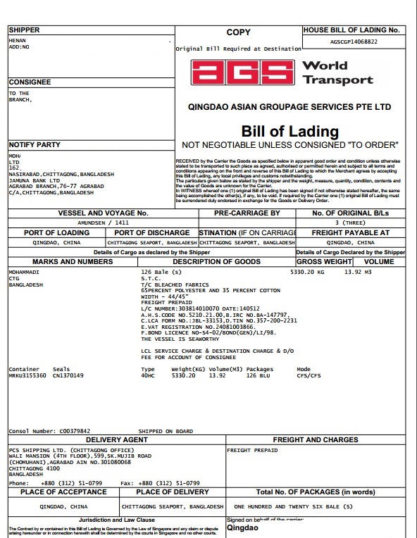 Dưới đây chúng tôi xin đính kèm thư xác nhận mua hàng cũng như B/L trong lần giao dịch trước với khách hàng Thái Lan vào năm ngoái.