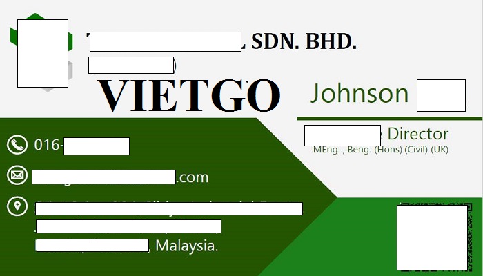 Vừa qua, VIETGO đã nhận được thông tin đơn hàng của ông Johnson về đơn hàng nhập khẩu gỗ dán về thị trường nội địa phục vụ cho hoạt động kinh doanh của công ty ông. Được biết, ông Johnson hiện đang là Phó giám đốc của công ty ██████████ SDN BHD, có trụ sở chính tại Sarawak, Malaysia, hoạt động trong lĩnh vực kinh doanh và phân phối thiết bị máy cưa trong hai thập kỷ qua. Với bề dày kinh nghiệm và sự hiện diện mạnh mẽ trong ngành, ██████████ SDN BHD đã thành công khẳng định mình là đối tác tin cậy của các doanh nghiệp trong lĩnh vực xưởng cưa.