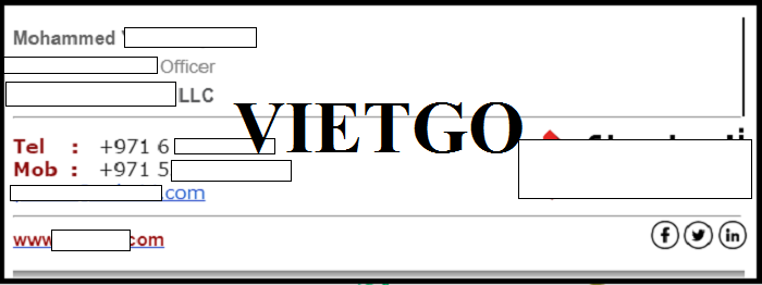 Vừa qua, ông Mohammed – thuộc công ty ██████████ LLC tại UAE đã liên hệ với VIETGO để bày tỏ mong muốn tìm nhà cung cấp mặt hàng cốc giấy phục vụ mục đích kinh doanh phân phối của công ty mình.