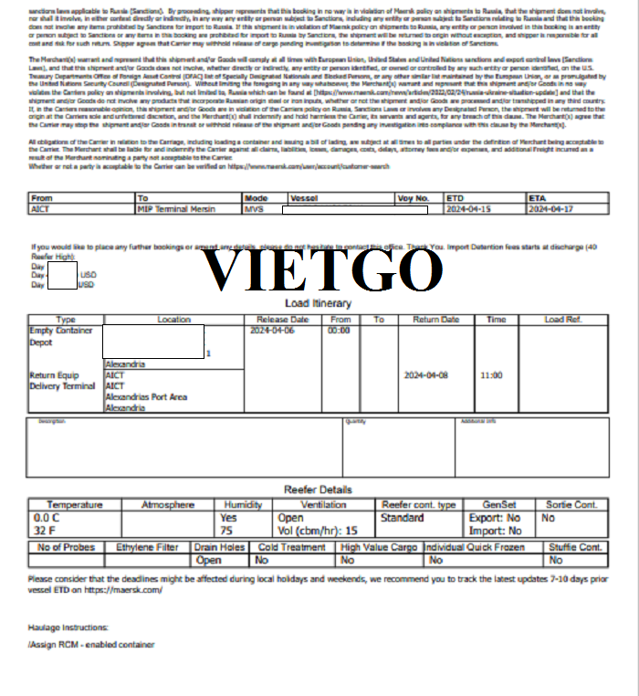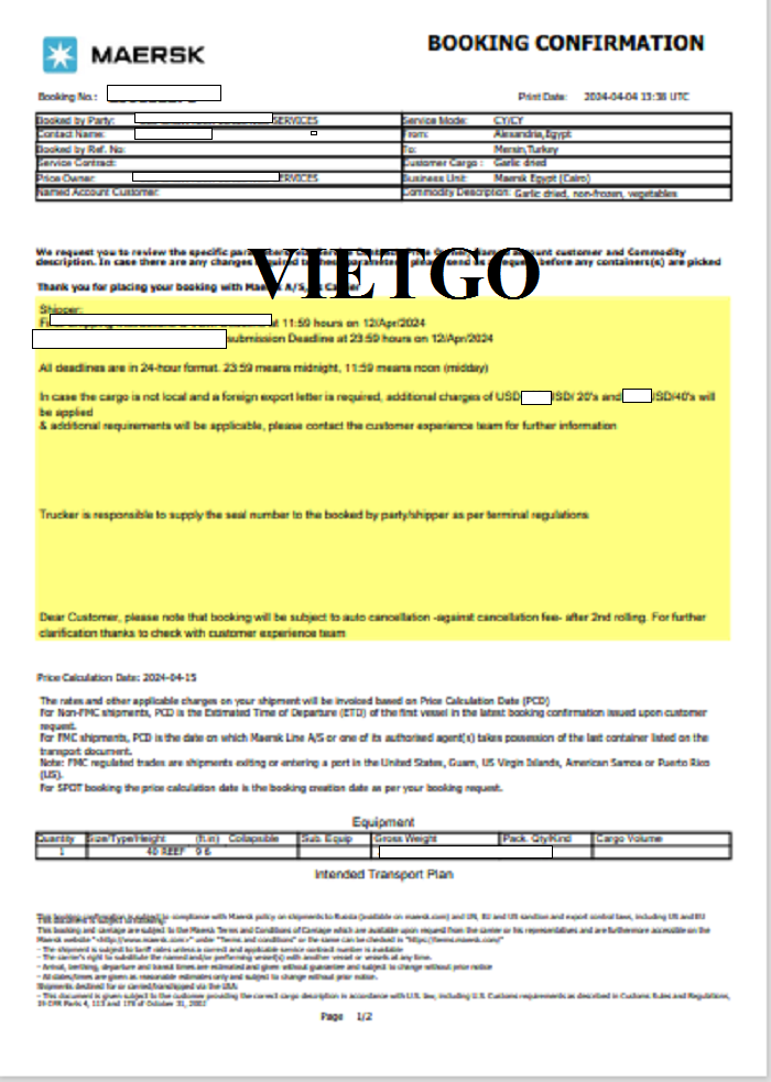 Dưới đây là hình ảnh bản xác nhận đặt hàng mặt hàng tỏi và được vận chuyển đến Turkey của vị khách hàng vào ngày 04/04/2024:
