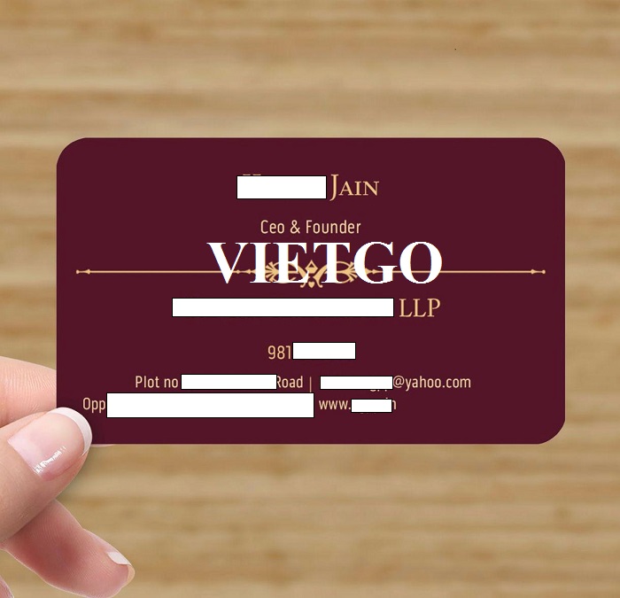 Với kinh nghiệm và thiện chí của ông, Vietgo tin tưởng rằng đây sẽ là đơn hàng đầy hấp dẫn cho quý Nhà cung cấp. Quý nhà cung cấp nào có thể đáp ứng được yêu cầu của vị khách hàng thân thiện này, vui lòng liên hệ và gửi báo giá cho ông Jain qua trong thời gian sớm nhất có thể qua thông tin liên hệ dưới đây.