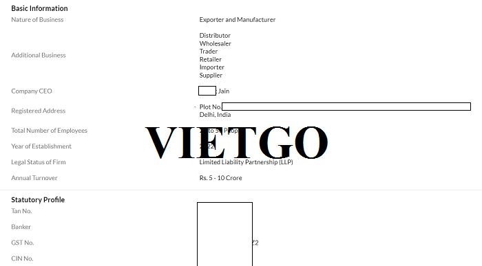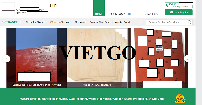 Vừa qua, ông Jain – thuộc công ty ██████████ LLP đã liên hệ với VIETGO để bày tỏ mong muốn tìm nhà cung cấp mặt hàng gỗ dán phủ phim phục vụ hoạt động kinh doanh của công ty mình.