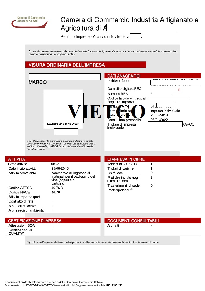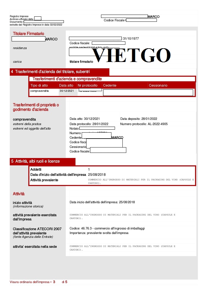 Được biết ông Marco là giám đốc và người sáng lập của ██████████ – công ty thương mại hàng hóa được đăng ký kinh doanh vào năm 2018 tại Nizza Monferrato, Ý, mã số nộp thuế của doanh nghiệp là ██████████.