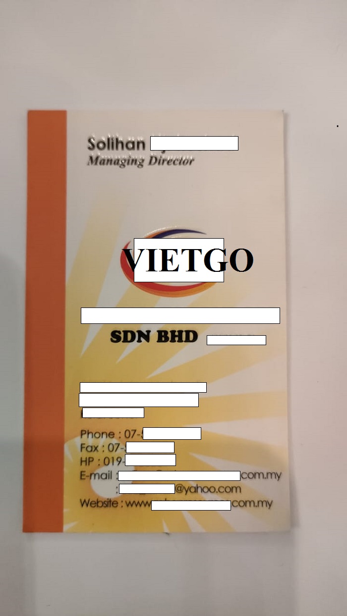 Ông Solihan – vị khách hàng của VIETGO lần này là đại diện mua hàng đến từ công ty ██████████ SDN BHD có trụ sở chính đặt tại Kulai Johor, Malaysia. ██████████ SDN BHD được thành lập vào tháng 8 năm 2003. Đây là một nhà sản xuất, phân phối và xuất khẩu gỗ và các sản phẩm từ gỗ. Một số sản phẩm thuộc danh mụa sản phẩm kinh doanh mà công ty đang đẩy mạnh quảng bá có thể kể đến như ván sàn chống trượt, ván ép, gỗ xẻ,… Công ty vị khách hàng đã mở rộng thị trường và tăng cường hoạt động kinh doanh trong những năm qua, chủ yếu cung cấp cho thị trường quốc tế bao gồm Bắc Mỹ, các nước Châu Âu, Trung Đông, Úc và Khu vực Ấn Độ Dương.