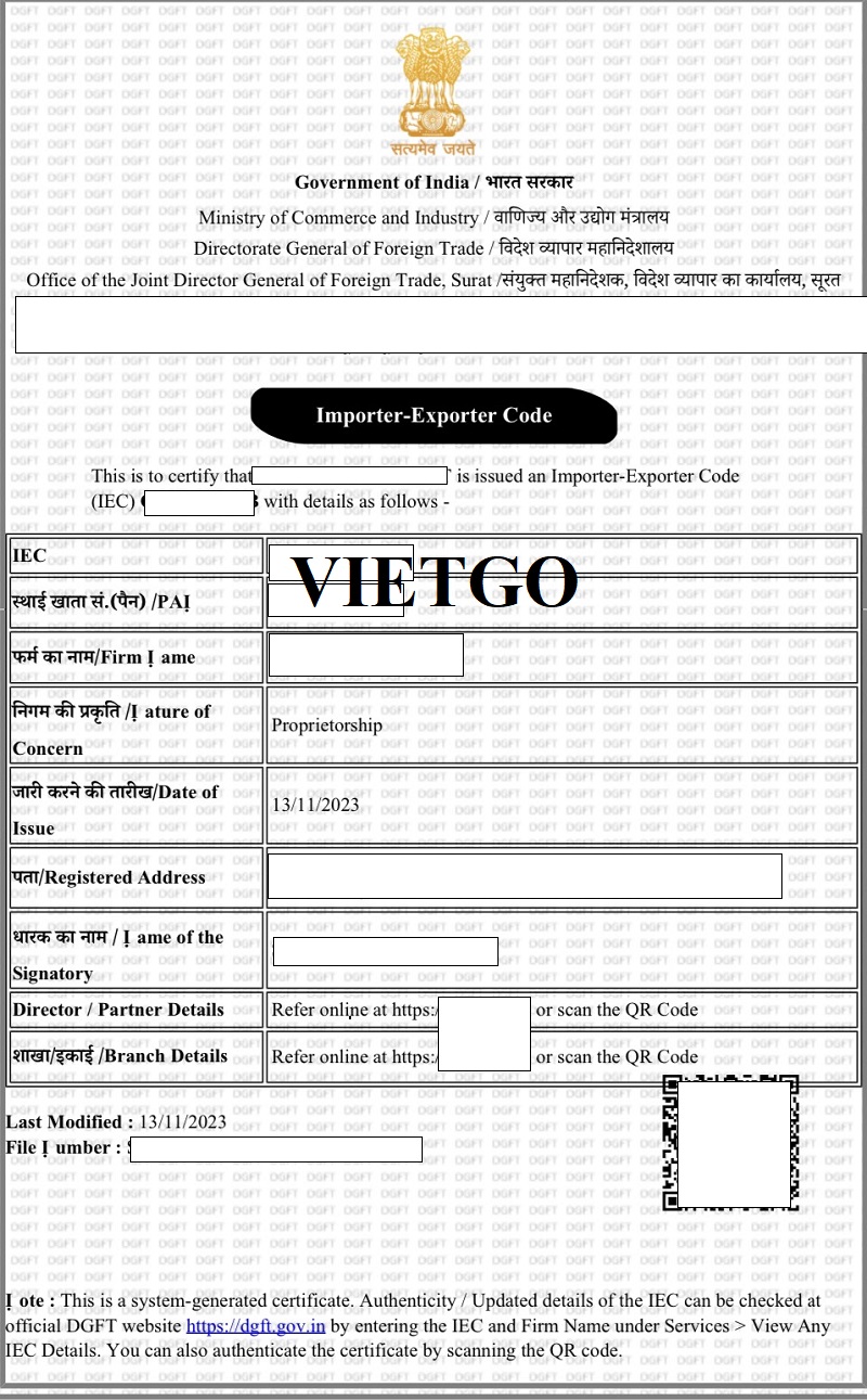 Hình ảnh giấy phép xuất nhập khẩu của công ty vị khách hàng