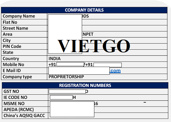 Ông Murugesan – đại diện công ty ██████████ Foods đã liên hệ với VIETGO trao đổi về mong muốn tìm kiếm nhà cung cấp cho đơn hàng nhập khẩu dài hạn thỏi nhôm sang thị trường Trung Quốc.
