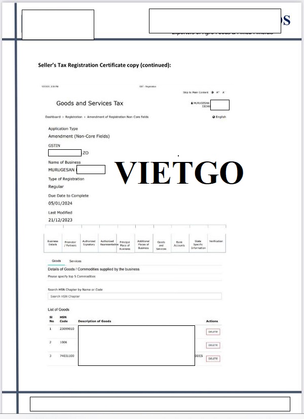 VIETGO xin gửi tới Quý nhà cung cấp thông tin đơn hàng, VIETGO chúc Quý vị có được một thương vụ thành công!