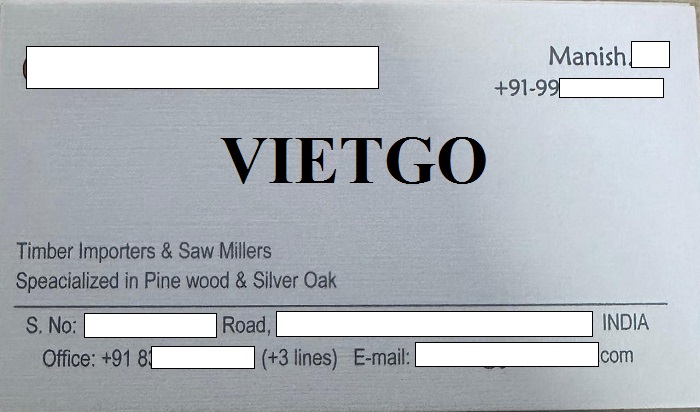 VIETGO xin gửi tới Quý nhà cung cấp thông tin về đơn hàng gỗ keo xẻ từ vị khách tiềm năng, ông Manish.