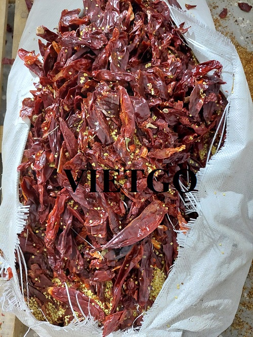Ớt khô đã qua làm sạch, không có cuống, không ẩm mốc, ít tạp chất, màu đỏ tự nhiên, vị cay nồng, không có aflatoxin