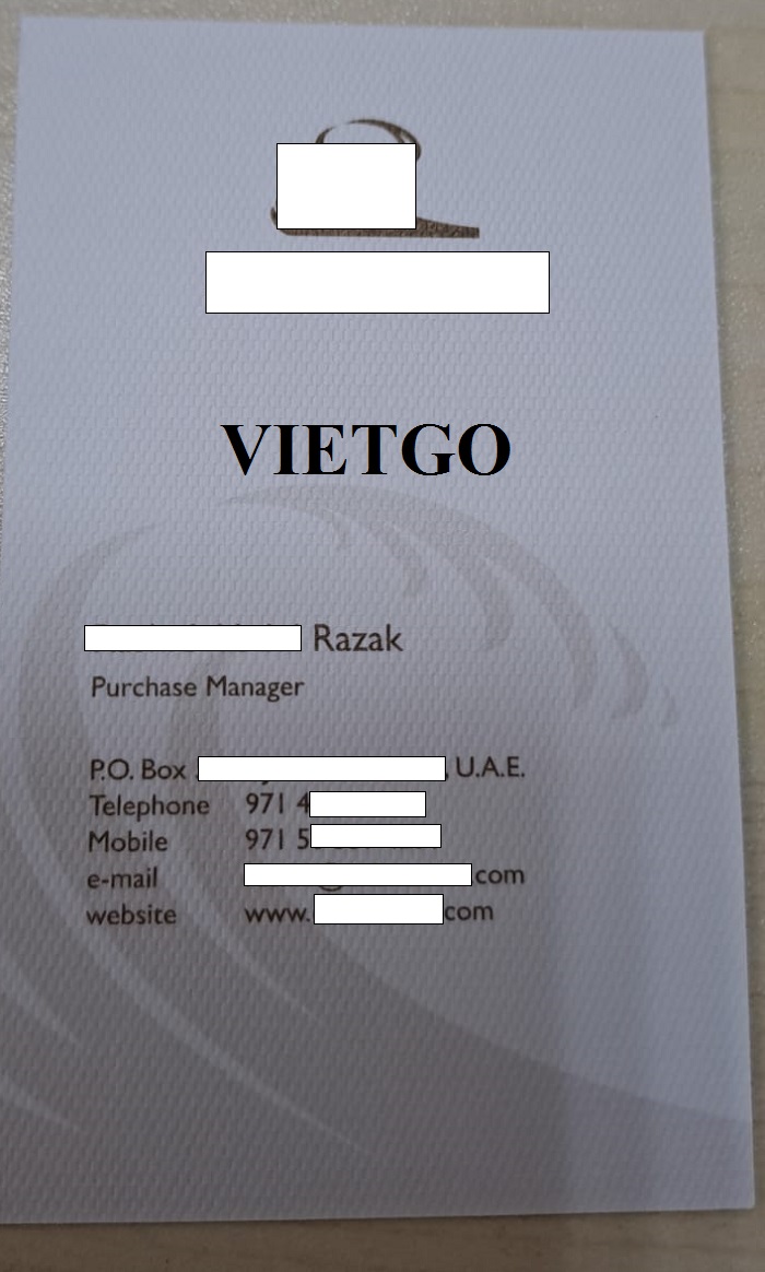 Vừa qua, ông Razak – đại diện mua hàng của công ty ██████████ đã liên hệ với VIETGO trao đổi về mong muốn tìm kiếm nhà cung cấp cho đơn hàng nhập khẩu gạch sang thị trường UAE.