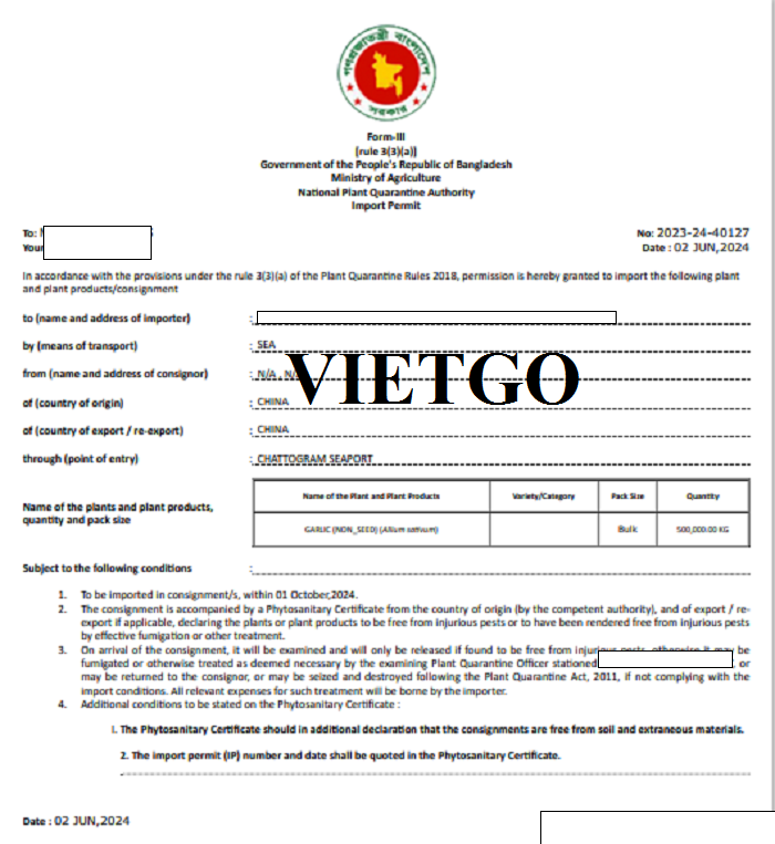 Opportunities for cooperation in exporting white garlic to the Bangladesh market.