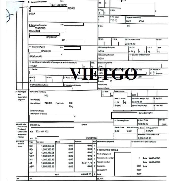 Hình ảnh một số hóa đơn nhập cảnh của vị khách hàng