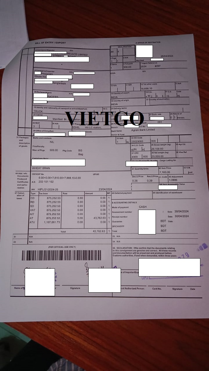 Hình ảnh giấy phép nhập khẩu vị khách hàng