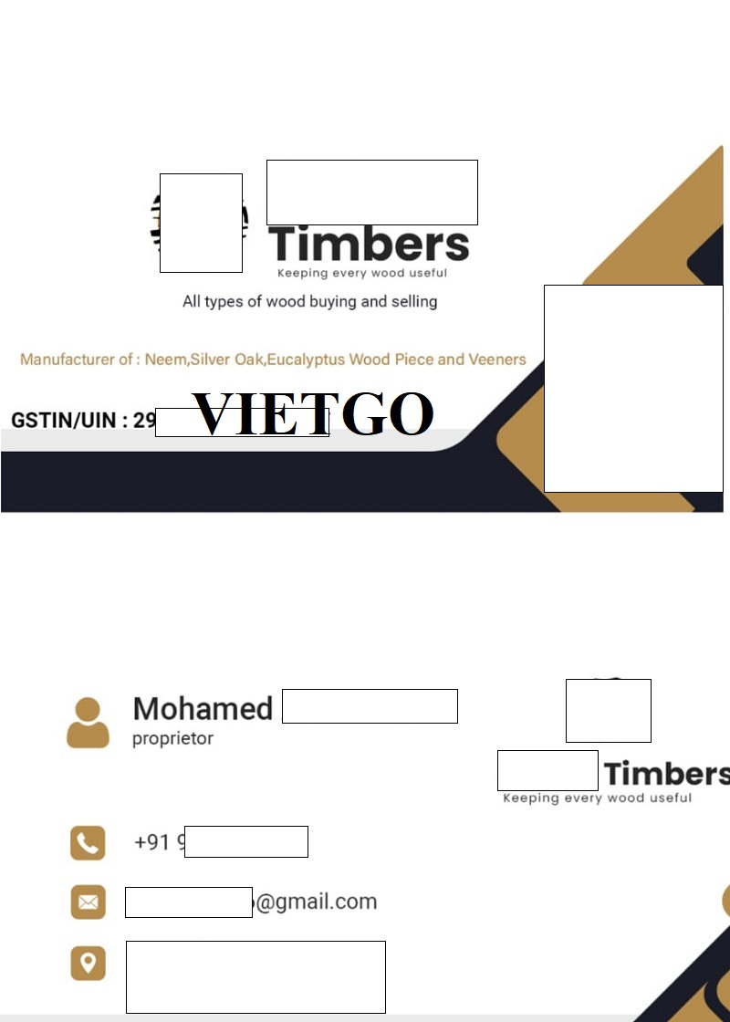 Vừa qua, ông Mohammed – đại diện công ty ██████████TIMBERS tại Ấn Độ đã liên hệ với VIETGO để bày tỏ mong muốn tìm nhà cung cấp mặt hàng ván bóc.