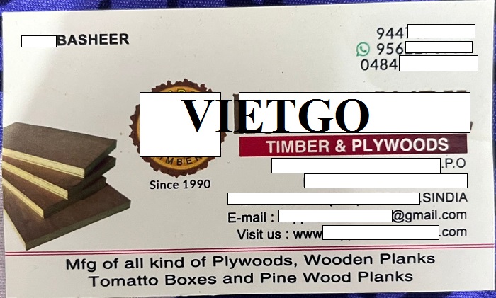 Vừa qua, VIETGO có cơ hội nói chuyện với quản lý trực tiếp của công ty ██████████ - ông Basheer. Công ty ông chuyên cung cấp các sản phẩm liên quan đến gỗ như gỗ dán, gỗ xẻ hộp, gỗ xẻ thanh...