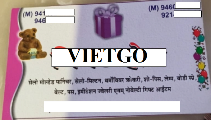 Vừa qua, ông Ashish – chủ cửa hàng bán buôn bán lẻ ██████████ tại Ấn Độ đã chủ động liên hệ với VIETGO nhằm mục đích nhập khẩu bình nhựa đựng nước để phục vụ cho hoạt động kinh doanh của công ty mình.