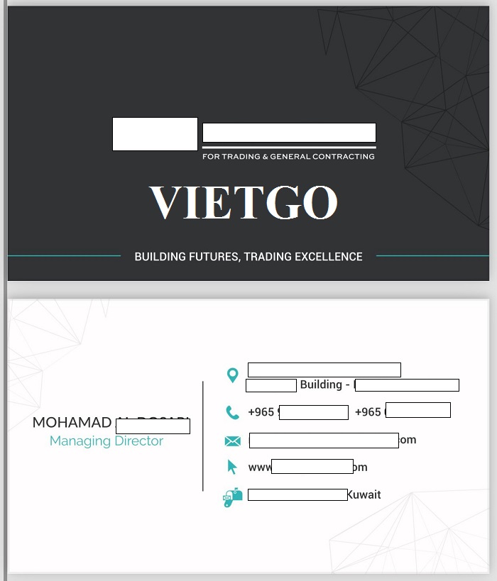 Vừa qua, ông Mohamad – Giám đốc của công ty ██████████ tại Kuwait đã trực tiếp liên hệ với VIETGO về nhu cầu nhập khẩu gỗ vụn tới thị trường Kuwait để phục vụ cho mục đích kinh doanh của công ty.