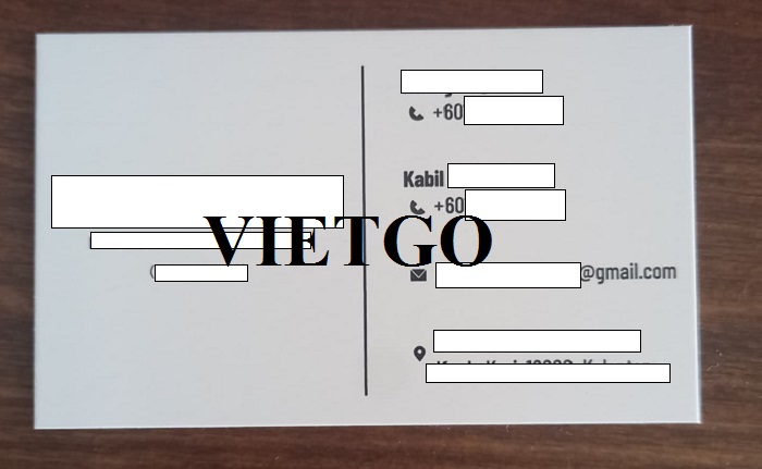 Quý nhà cung cấp nếu có thể đáp ứng các yêu cầu từ ông Kabil xin vui lòng liên hệ và gửi sản phẩm mẫu cũng như báo giá trong thời gian sớm nhất qua địa chỉ liên hệ mà chúng tôi cung cấp sau đây: