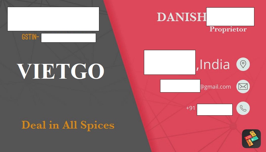 Ông Danish ████████████████████- vị khách hàng của VIETGO lần này đại diện mua hàng đến từ Ấn Độ. Hiện tại ông đang là chủ sở hữu của công ty ██████████, có trụ sở tại Kolkata, Ấn Độ. Đây là công ty chuyên xuất nhập khẩu các loại gia vị từ các quốc gia khác để cung cấp cho khách hàng của mình. Ấn Độ nổi tiếng với sự phong phú và hương vị đặc trưng trong các món ăn. Đây là một phần quan trọng của nền văn hóa và ẩm thực của người dân bản địa nơi đây. Do đó, đây là một trong những thị tiềm năng để ông có thể mở rộng thêm các sản phẩm kinh doanh của mình.