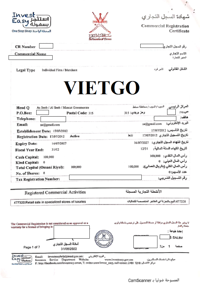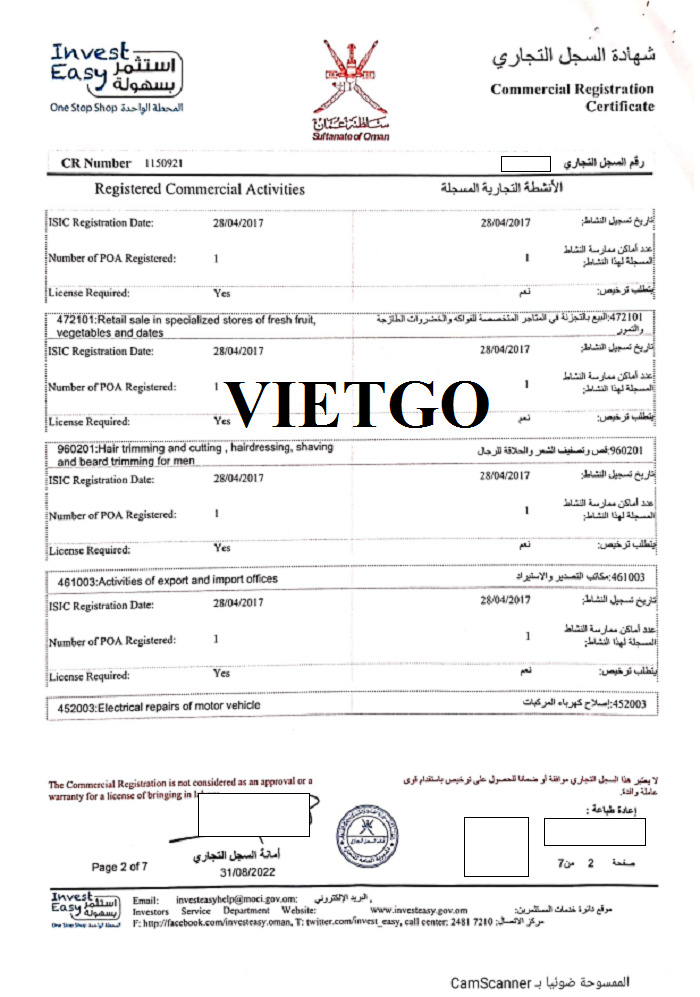 Hình ảnh giấy đăng ký kinh doanh của công ty do vị khách hàng cung cấp