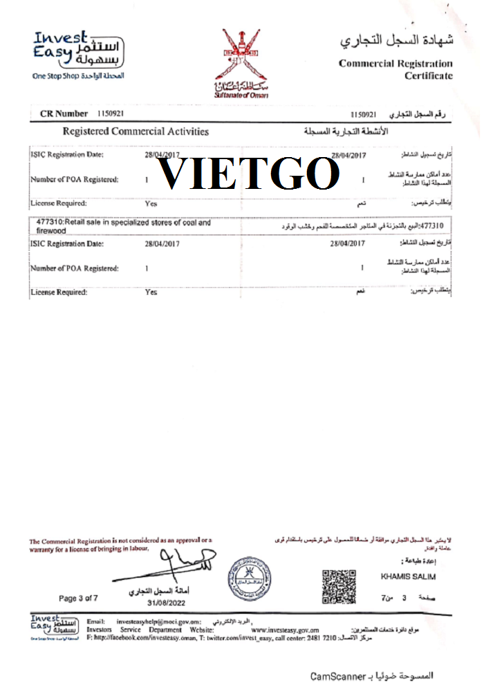 Ông Salem rất hy vọng rằng với sự giúp đỡ của VIETGO, ông sẽ sớm có thể kết nối thành công với nhà cung cấp phù hợp với thiện chí hợp tác lâu dài, tin cậy. Với những chia sẻ trên, vị khách hàng rất mong muốn nhận được phản hồi về mức giá cạnh tranh từ phía nhà cung cấp của VIETGO. Quý nhà cung cấp nào quan tâm đến đơn hàng xuất khẩu than củi đen sang Oman, vui lòng liên hệ và báo giá với vị khách hàng theo địa chỉ thông tin liên lạc dưới đây: