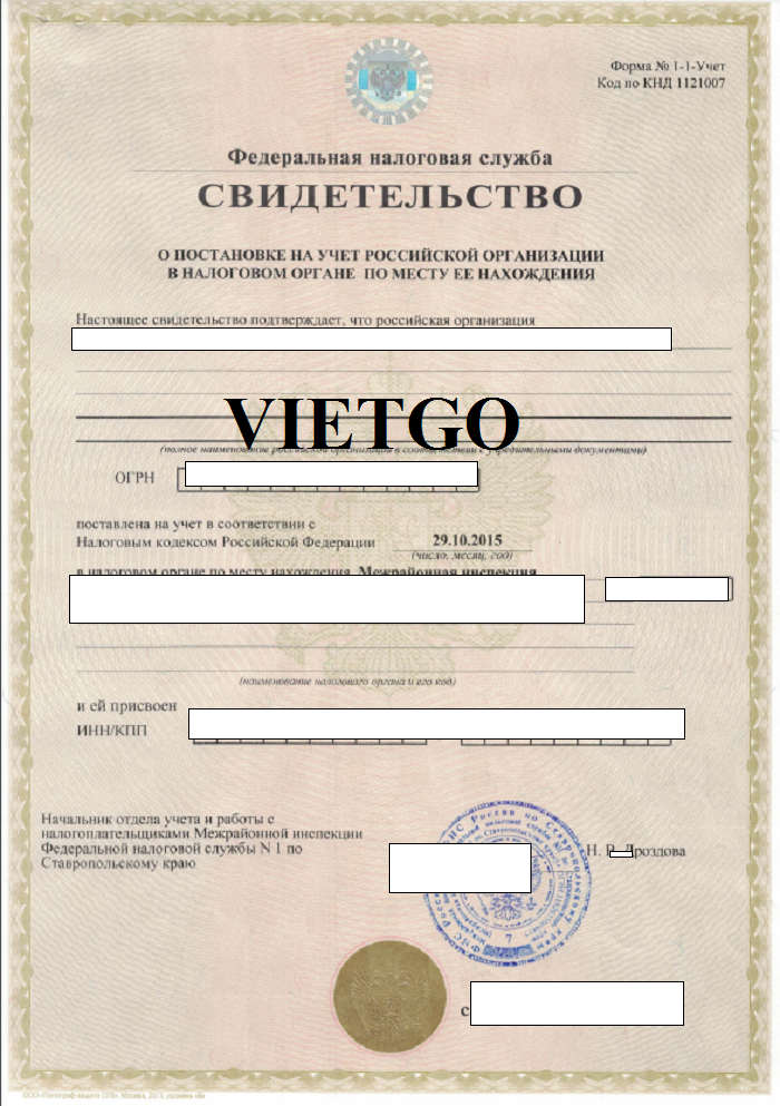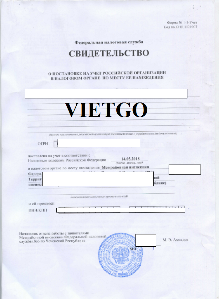Hình ảnh giấy chứng nhận đăng ký thuế của công ty vị khách hàng