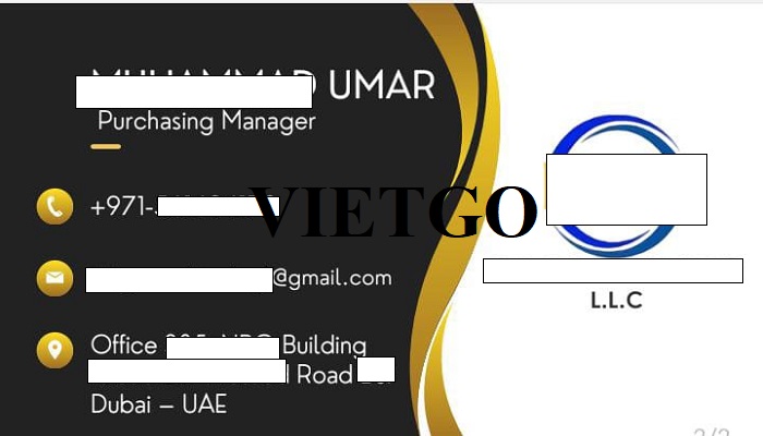 Ông Umar là Giám đốc mua hàng đến từ công ty ██████████ LLC có trụ sở văn phòng chính đặt tại UAE. ██████████ LLC được thành lập vào năm 2020, là công ty xuất nhập khẩu đa dạng các loại mặt hàng, bao gồm: mặt hàng nông sản, máy móc và thiết bị công nghiệp, phụ tùng cơ khí, điện tử dân dụng, dệt may, thực phẩm và đồ uống, hóa chất và hóa dầu, vật liệu xây dựng. Các sản phẩm của công ty được phân phối tới nhiều khu vực tại thị trường nội địa và nhận được nhiều phản hồi cũng như đánh giá tích cực từ khách hàng. Ngoài ra, ██████████ LLC còn thường xuyên cập nhật các xu hướng mới của thị trường cũng như tham khảo thêm nhiều sản phẩm đặc trưng tại các quốc gia khác để danh mục sản phẩm của công ty ngày càng phong phú và trở nên thu hút hơn với người tiêu dùng.