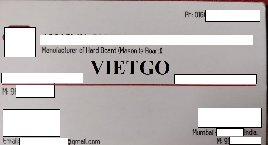 Vừa qua, ông Vishnu – đại diện công ty ██████████ tại Ấn Độ đã liên hệ với VIETGO bày tỏ mong muốn nhập khẩu sản phẩm ván MDF cho mục đích kinh doanh sắp tới của công ty mình.