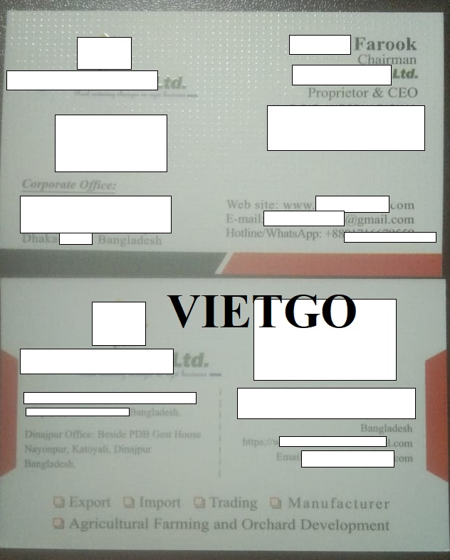 VIETGO xin gửi đến Quý nhà cung cấp thông tin đơn hàng từ ông Farook với nhu cầu tìm kiếm nhà cung cấp cho sản phẩm quế sang thị trường Bangladesh