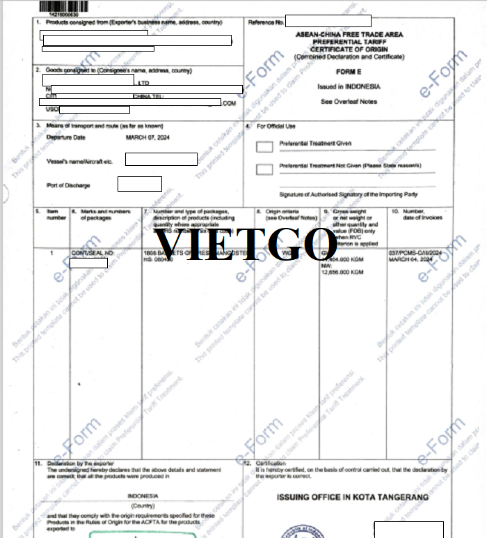 Hình ảnh chứng chỉ nguồn gốc xuất xứ