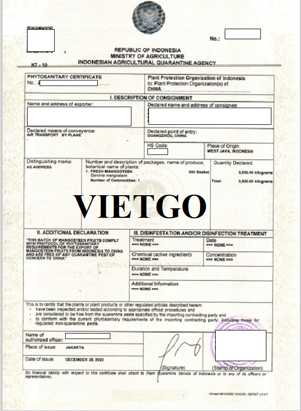 Dưới đây là hình ảnh một số giấy tờ và bản vận đơn xuất khẩu mặt hàng măng cụt từ Indonesia đến Trung Quốc của vị khách hàng đã thực hiện trong những năm qua: