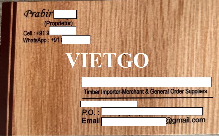 VIETGO xin gửi tới Quý nhà cung cấp thông tin về đơn hàng ván bóc đến từ vị khách hàng tiềm năng, ông Prabir.