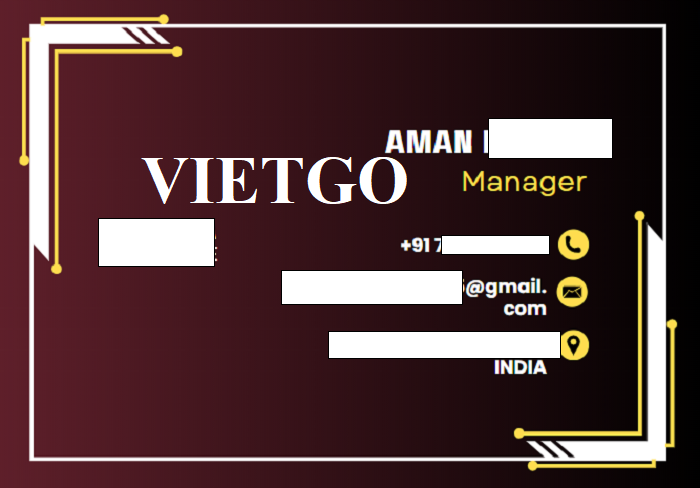Quý nhà cung cấp nếu có thể đáp ứng các yêu cầu từ ông Aman xin vui lòng liên hệ và gửi sản phẩm mẫu cũng như báo giá trong thời gian sớm nhất qua địa chỉ liên hệ mà chúng tôi cung cấp sau đây: