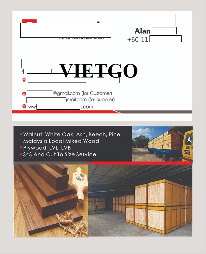Ông Alan hiện đang làm việc cho công ty ██████████, là một công ty cung cấp dịch vụ tiếp thị và bán hàng có trụ sở tại Johor, Malaysia. Ông Alan chia sẻ: “Công ty chúng tôi được thành lập vào năm 2019. Trong khi đó, đội ngũ dịch vụ của công ty chúng tôi đã có hơn 8 năm kinh nghiệm trong ngành gỗ và các lĩnh vực liên quan và cam kết cung cấp dịch vụ tốt nhất cho khách hàng. Chúng tôi cam kết hỗ trợ các khách hàng, nhà cung cấp ở nước ngoài tìm kiếm cơ hội kinh doanh phù hợp nhất trên toàn lãnh thổ Malaysia. Hỗ trợ các nhà cung cấp sản phẩm đủ điều kiện và các công ty đáng tin cậy để tìm ra quyền lợi phù hợp nhất và thúc đẩy sự phát triển kinh doanh cho khách hàng là sứ mệnh chính của công ty chúng tôi. Các loại gỗ mà chúng tôi thường sử dụng là gỗ thông, gỗ cao su và gỗ teak. Đây là những loại gỗ vừa rẻ chất lượng vừa tốt, phù hợp với phân khúc khách hàng có thu nhập trung bình. Chúng tôi từ các loại gỗ đó sản xuất thành ván ép, ván bóc, gỗ LVL để xuất khẩu sang các nước khác.