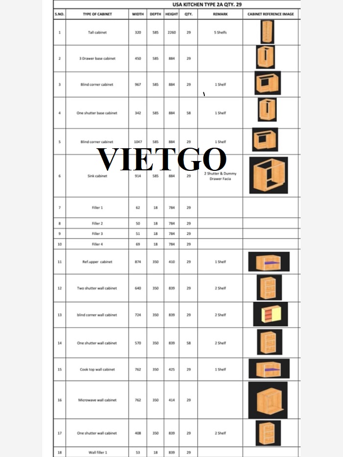 VIETGO xin gửi tới Quý nhà cung cấp thông tin về đơn hàng tủ bếp từ vị khách tiềm năng, ông Rajeev.