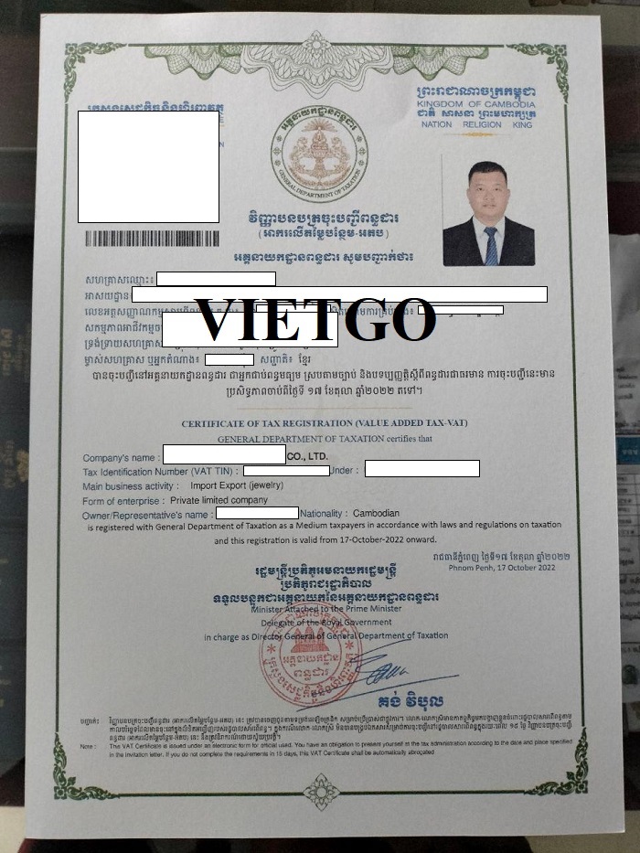 Hình ảnh giấy phép đóng thuế của công ty vị khách hàng